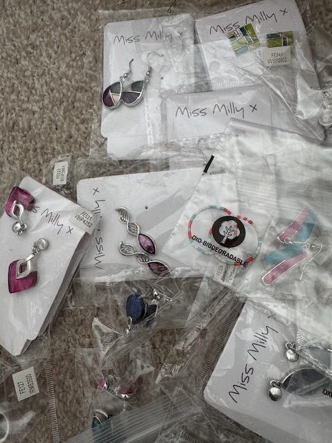 This bundle of Miss Milly necklaces contains 100 pairs of earrings. Please note that the jewellery will be sent as is shown in the photos along with some spare backs. The bundle can only be dispatched from head office and shipped with other bundles. Current and sale stock lines cannot be ordered with it. The usual delivery charges apply to orders for bundles. Bundles cannot be returned. This jewellery may not be barcoded and might not have swing tickets or they may be damaged.