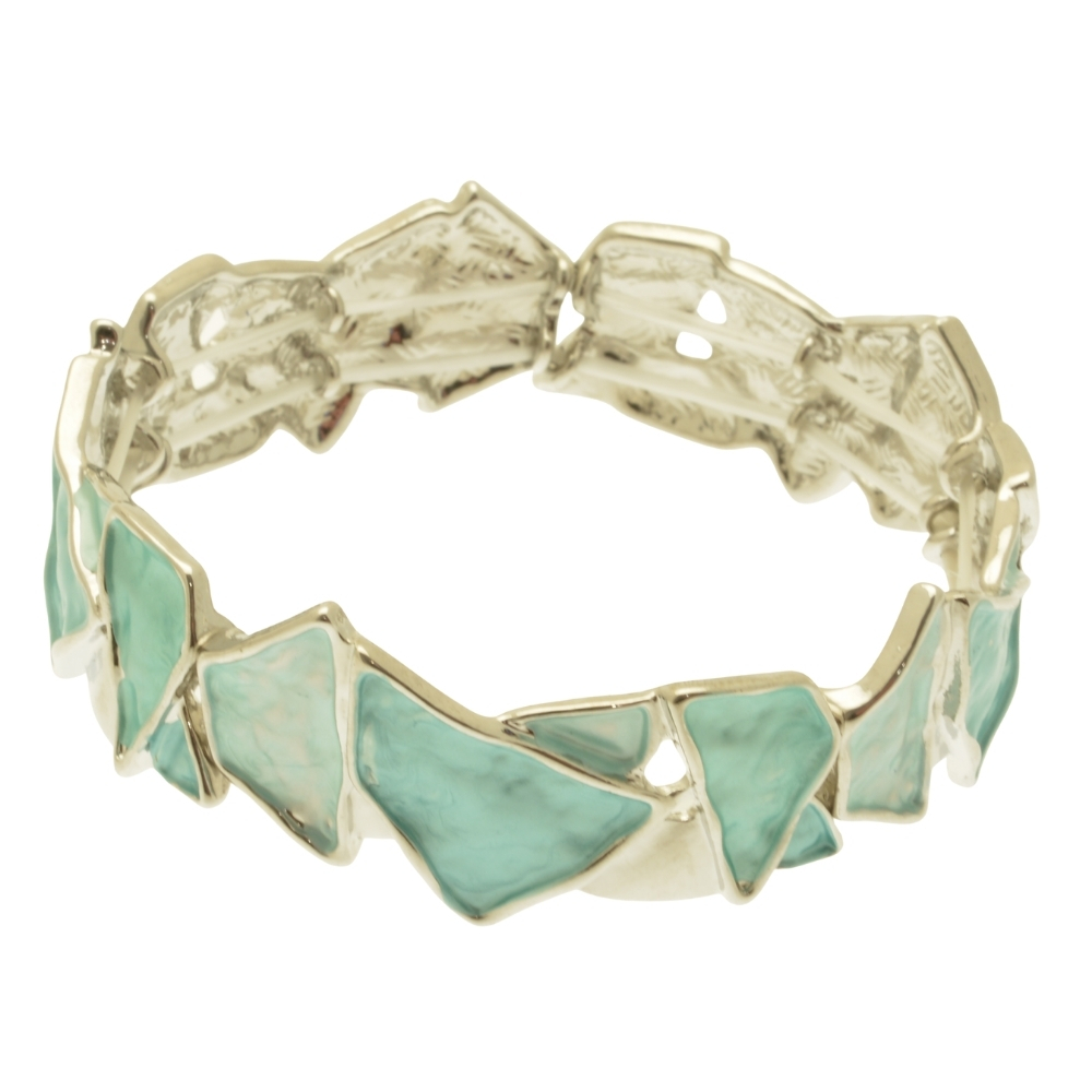 This pretty Spring and Summer bracelet uses hand-painted aquas the colour of beach glass. The bracelet measures 2.5cm high and is elasticated, making it easy to put on and take off, and suitable for different wrist sizes.