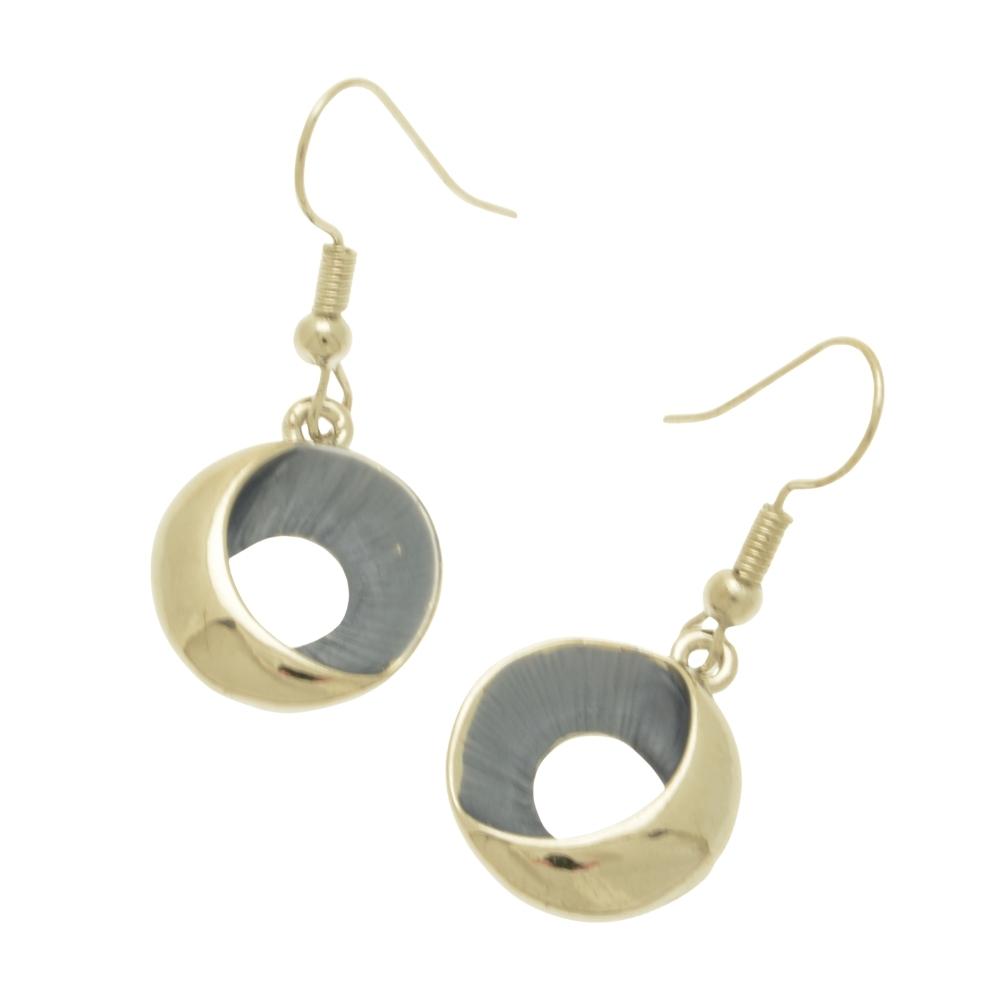 With their stylish contrast between a hand-painted textured, blue surface and the shiny, silver-coloured metal, these earrings have an appealing style reminiscent of shells and the ocean. The decorative element is 1.5cm in diameter and drops from a fishhook held in place with a silicon stopper.