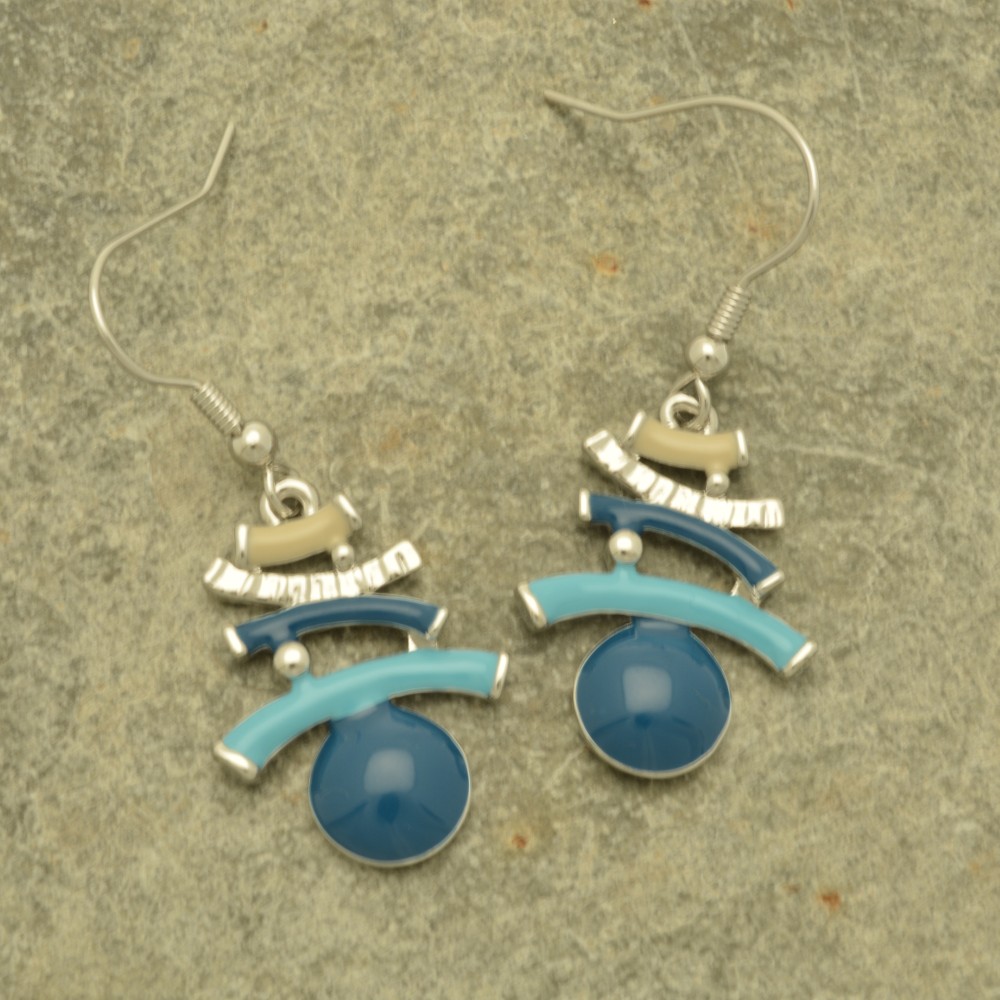 A striking pair of modern statement earrings featuring layered arcs in tropical greens, accented with a textured silver-coloured arc. Their bold geometric design and glossy detailing create a contemporary look that pairs effortlessly with both casual and elegant styles. The earrings are 1.8cm wide and drop 2.3cm from the base of fishhooks. Silicon stoppers are provided to keep them secure in your ear.