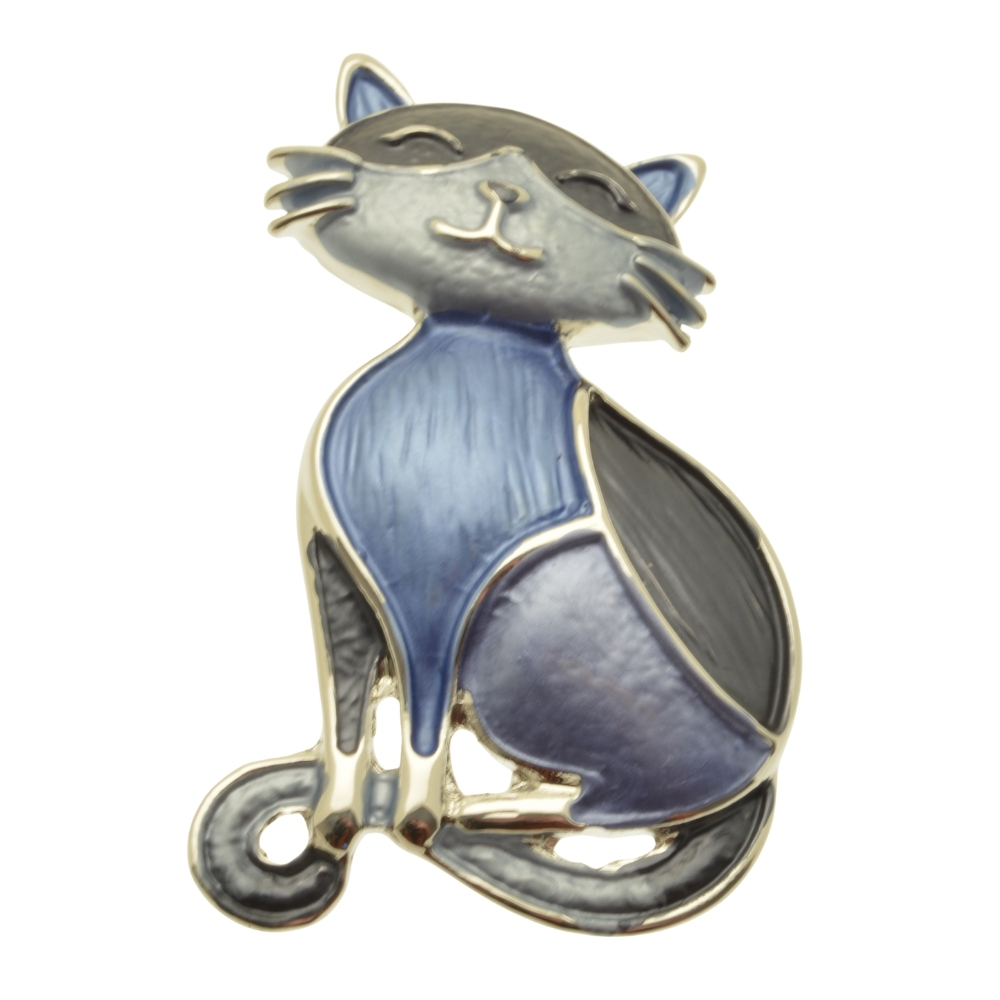 Contentedly purring, this beautiful blue cat sits with its tail curled and waiting for attention. The brooch uses a strong magnetic fastening for easy placement and damage-free removal. You could wear this on a coat or jumper, or on a bag or hat, or even as a scarf or pashmina pin. The magnetic brooch measures approx 5cm high by 4cm wide.