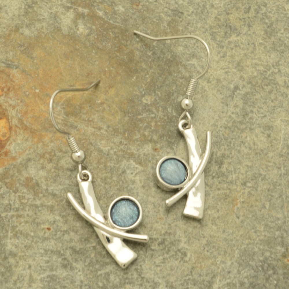 The Celestial Horizon Drop Earrings reflects the soft beauty of a powder-blue sky. The soft blue resin centrepiece is set in a graceful silver-coloured frame, evoking the quiet glow of dwan on the horizon. The decorative element is 2cm high by 1cm wide, and hangs from the base of fishhoks, which are secured in the ear with silicon stoppers.