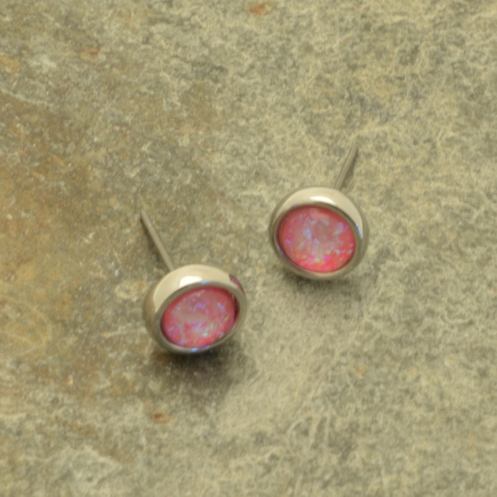 These eye-catching coral stud earrings are made with an iridescent or opalescent resin, which gives them a lovely shimmer. They are classically simple and timeless with an attractive shiny silver surround.