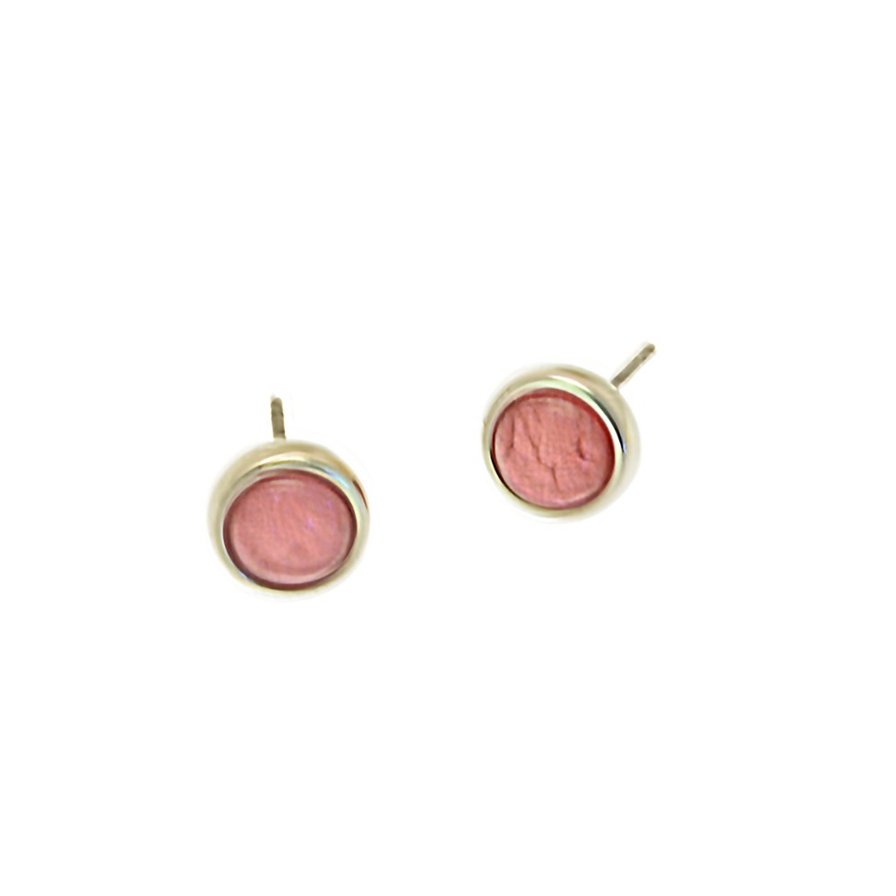 These warm coral stud earrings are classically simple and timeless with an attractive shiny silver surround. They are made with an aluminium foil backed resin to give lustre. The earrings measure approx 0.9mm in diameter and are attached to posts and butterflies.