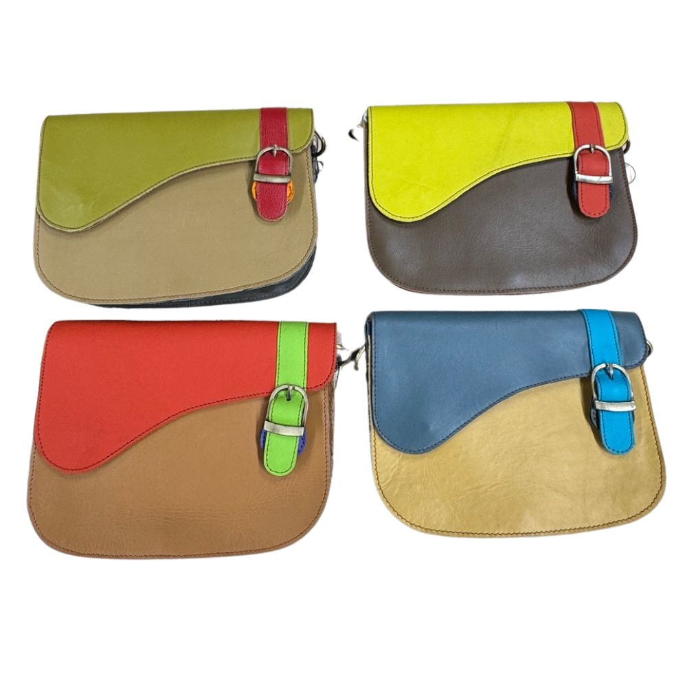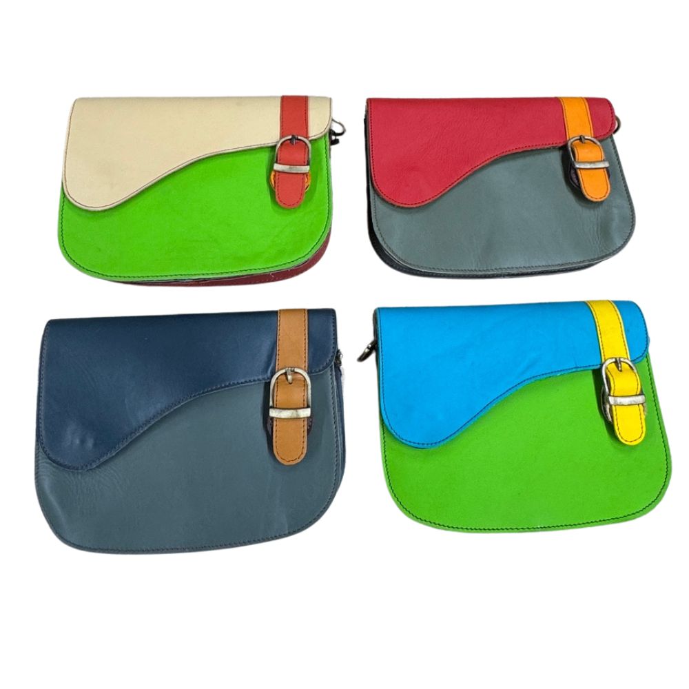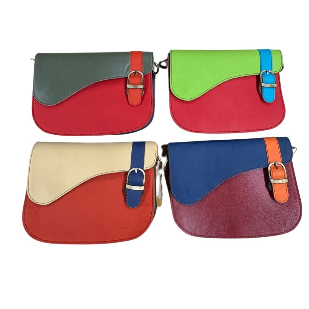 Important: the item you receive will not be the same colours as in the photo as the pieces of recycled leather are selected at random and each piece is unique. This is one of their key selling points. However, we have split the bag designs by the main or base colour in order to make it easier for customers to select those closest to what they’d like.