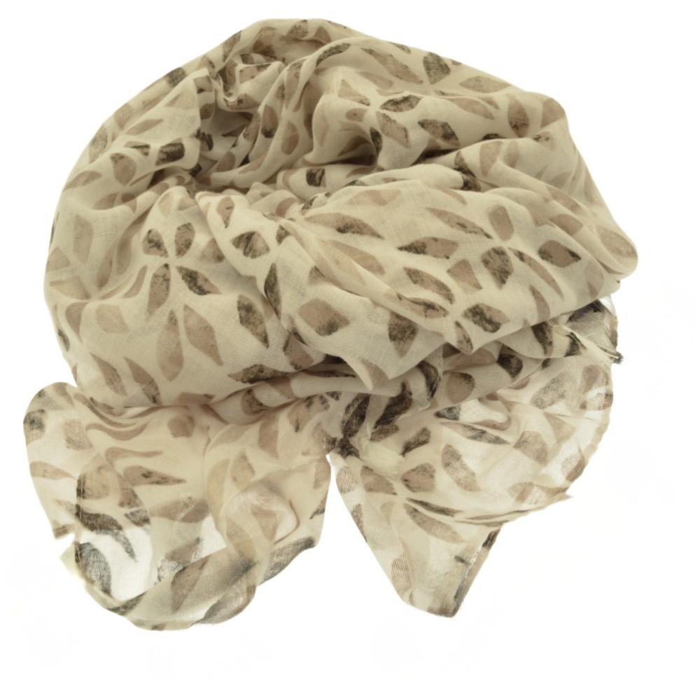 Featuring a classic leaf design, this soft scarf in greys and white is great for the shoulder seasons and for keeping an outfit neutral. It is made with a soft 20% cotton and 80% viscose mix. It measures 180cm by 90cm and weighs 100g. It can be washed at 30 degrees Celsius but handwashing is preferable.?