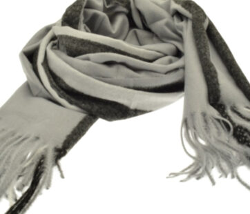 Grey is the new black and especially so with darker and lighter grey stripes adorning the edges to make up this super soft, winter weight scarf.