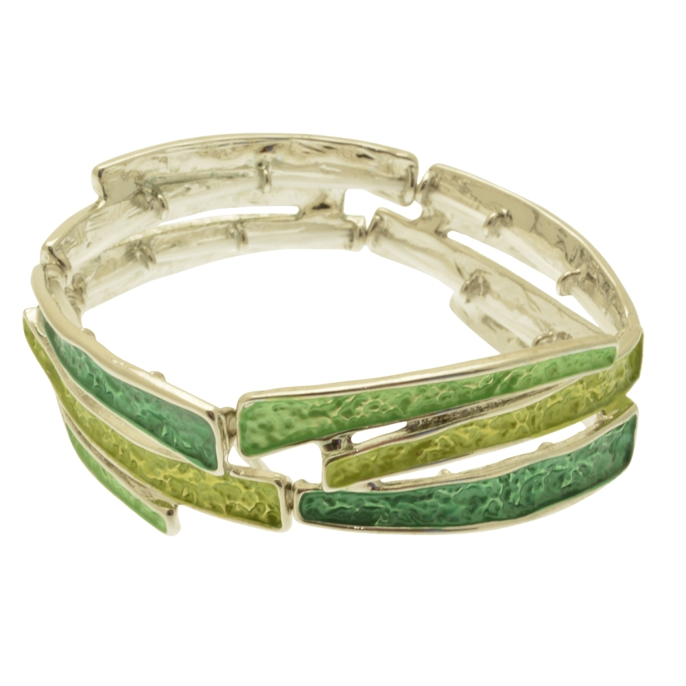 The name of this bracelet was inspired by the names of the featured green colours; Amazon, Poison and Lime. It is a vibrant piece with styish, curved pieces that will sit prettily around the wrist. Each green element is approximately 1cm high and 2.5cm wide. The bracelet is elasticated, making it easy to put on and take off, and suitable for different wrist sizes.