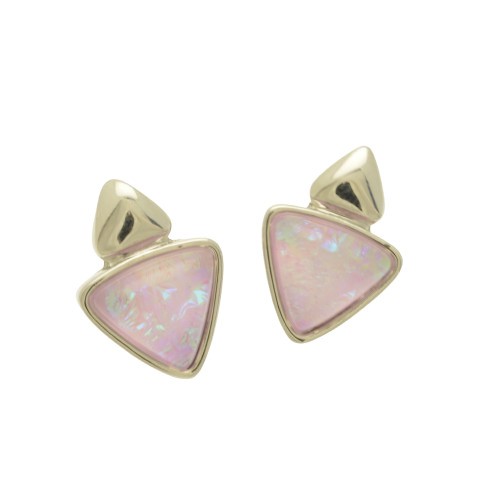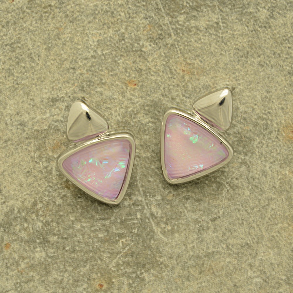 The playful pink iridescence of these delicate resin earrings give them more presence than their size belies. The earrings measure approximately 0.8cm by 0.8cm and are held in place with posts and silicon stoppers.