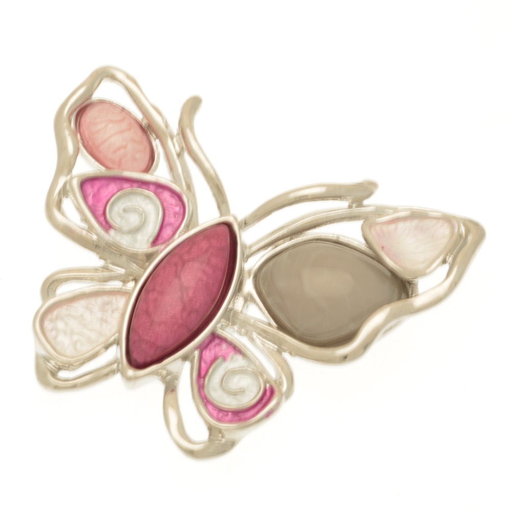The rich raspberry marble resin and paint of this brooch is tempered by the soft pinks and grey, and creates a lovely Spring and Summer piece that will also carry through the whole year. The brooch is 5cm high by 6cm wide and is held in place with a strong magnet. It can easily be moved between clothing, hats, scarves and bags without making holes, and can be used to decorate anything made of metal.